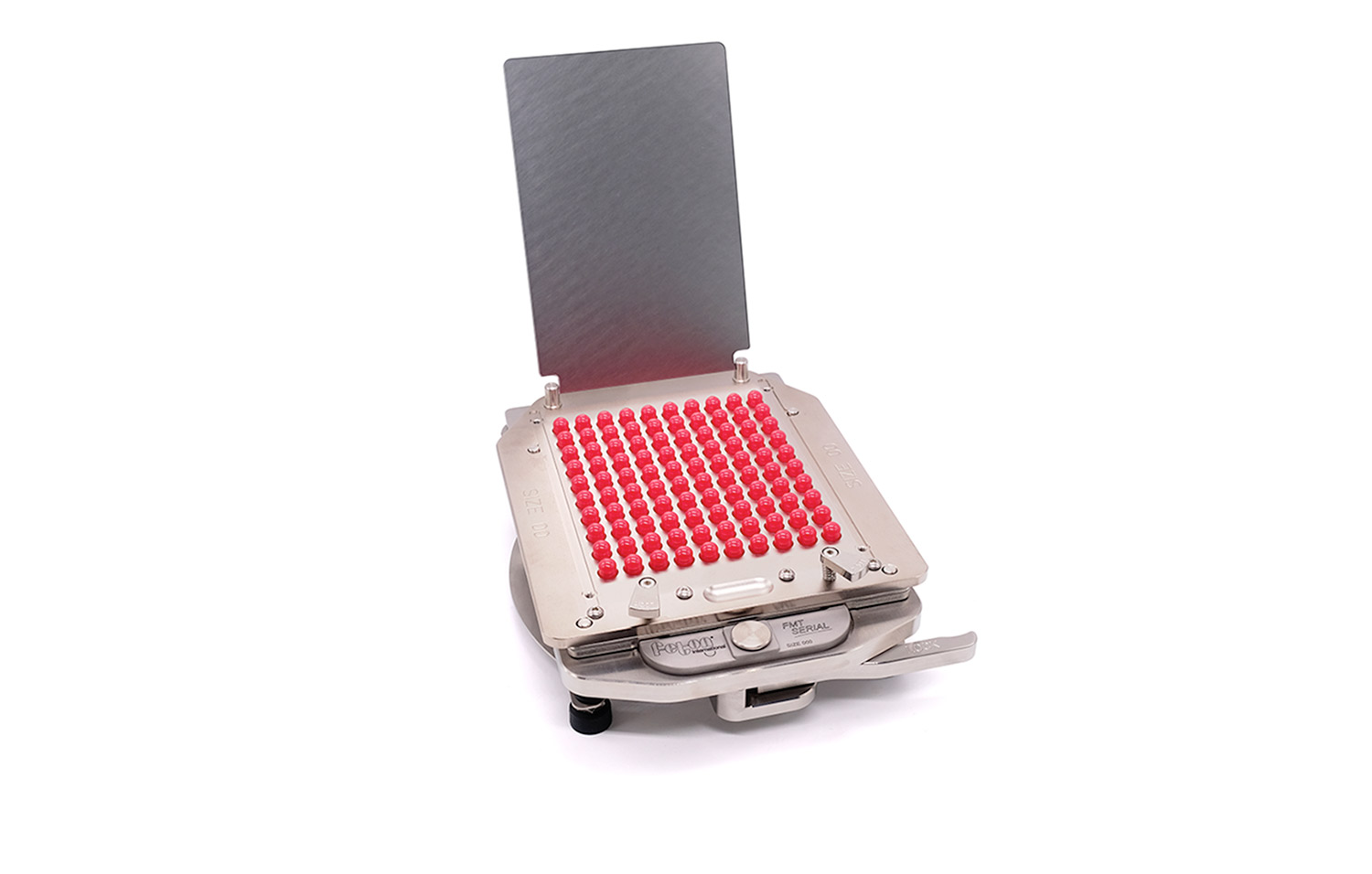 - Une taille de gélule par appareil - Notre gélulier est facile à nettoyer. - Aucun réglage n'est nécessaire. - Plaques en acier inoxydable. - Cadre et petites pièces en acier inoxydable. - Remplissage des tailles de gélules 00, 0, 1, 2, 3, 4 et 5. ─────────────────── MODE D'EMPLOI : Démonstration vidéo 1. Préparez votre matériel. Installez les plaques dans cet ordre : Bottom Plate, Filling Plate, Top Plate. Veillez à orienter les Bottom et Filling plates avec les encoches vers l'avant. 2. Chargez les gélules. Vous pouvez les placer à la main ou à l'aide d'un chargeur de gélules Feton. 3. Tirez le levier pour verrouiller les corps des gélules. 4. Tirez la Top Plate vers le haut, en commençant par l'arrière pour faciliter la séparation. Poussez avec vos pouces sur la Filling Plate dans les coins arrière et tirez avec les doigts sur la Top Plate. 5. Relâchez le levier. Si nécessaire, poussez sur les corps des gélules pour qu'ils soient au même niveau que la Filling Plate. Remplissez les gélules. Utilisez un tasseur si nécessaire. 6. Placez la Top Plate. Tirez sur la Base Plate pour pousser les corps des gélules dans les têtes des gélules. Les capsules sont maintenant « préfermées ». 7. Prenez la Top Plate et retournez-la sur votre table. Si vous disposez d'un Serial Closer Feton, utilisez-le pour fermer les gélules en un seul mouvement régulier. Si vous n'avez pas de Serial Closer, fermez les gélules à la main. 8. Vos gélules sont maintenant prêtes.