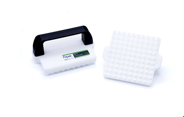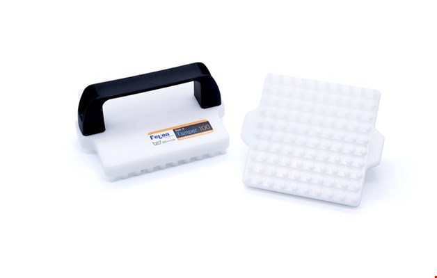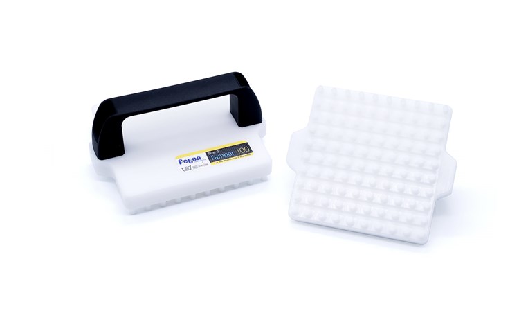 - Le tasseur de poudre permet de compresser la poudre simultanément dans chaque gélule.
