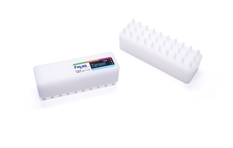 - Le tasseur de poudre permet de compresser la poudre simultanément dans chaque gélule.